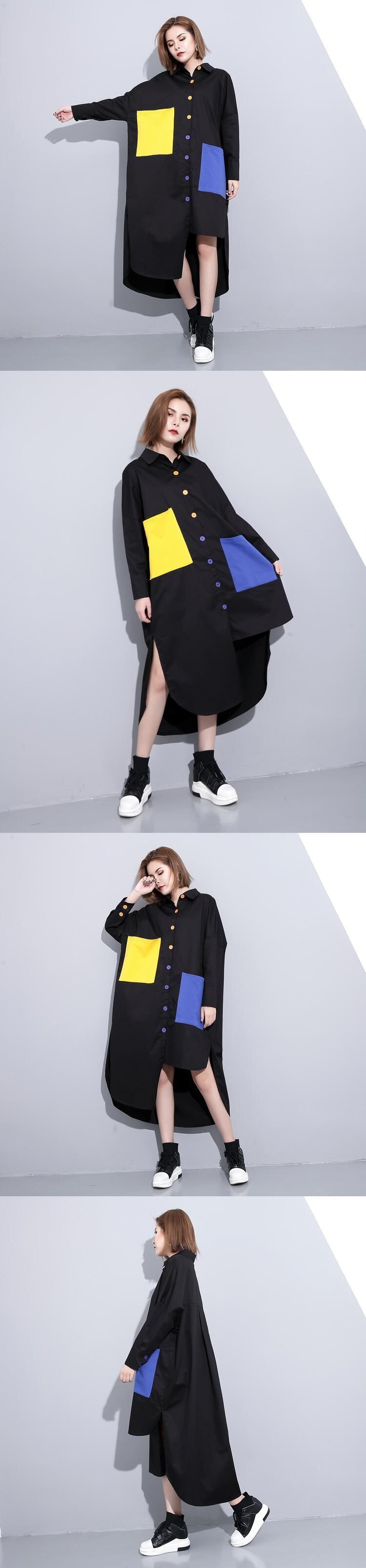 スプリング長袖スリーブシャツ カラーポケットトップス ロング 大きめサイズ 春物 ラブタオタオダレンハウス97872055150