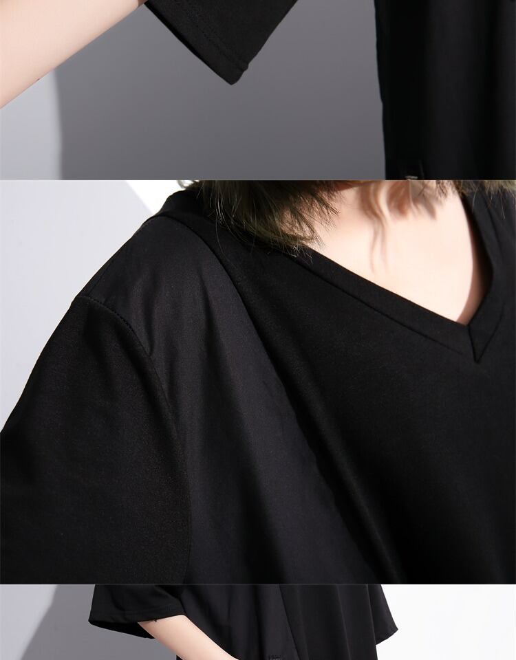 Vネックドレス メッシュレザーポケット半袖スリーブシャツ ハーフスリーブ ステッチ ラブタオタオダレンハウス12226170731