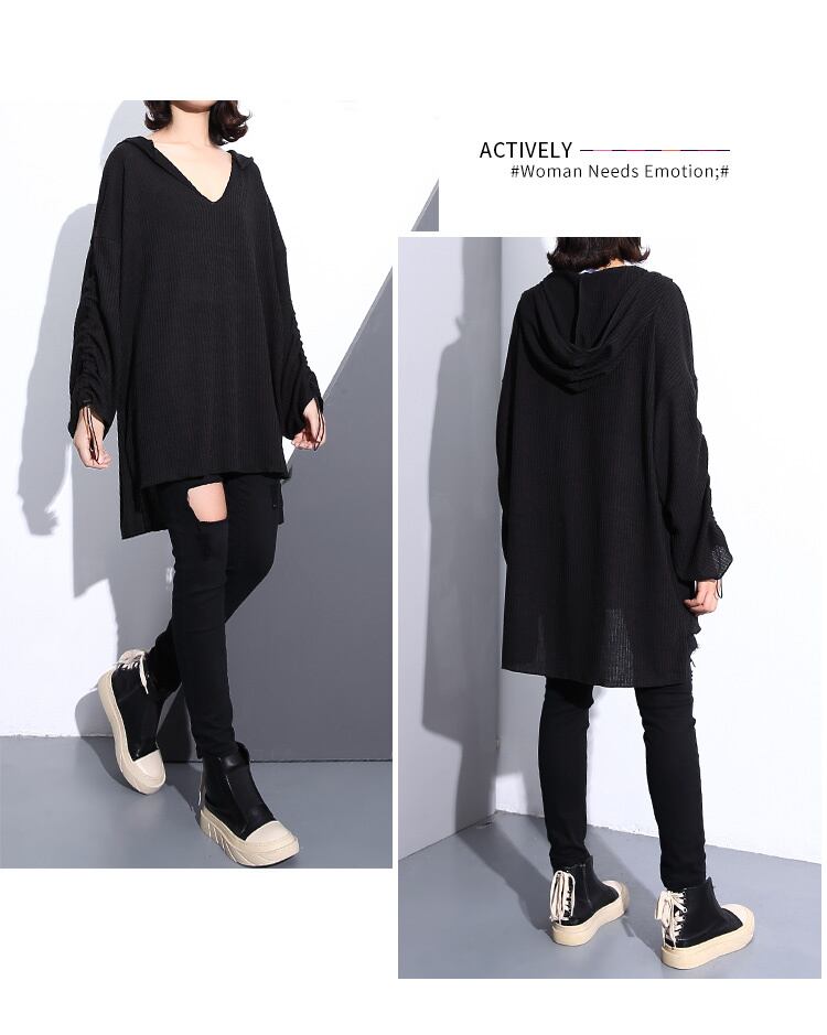 スプリングオータムソリッド カラー薄手コート フードセーター ルーズプルオーバー 大きめサイズ 春物 秋物 ソリッドカラー ラブタオタオダレンハウス94892295509