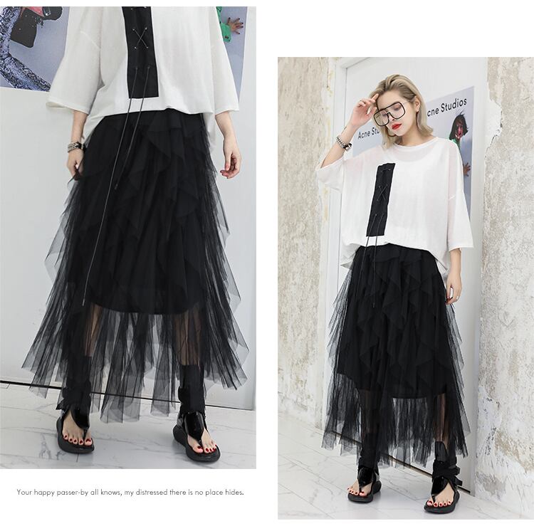 サマースタイルルーズハイウェストウェストメッシュスカート レディース レッド 夏物 ラブタオタオダレンハウス96384889254