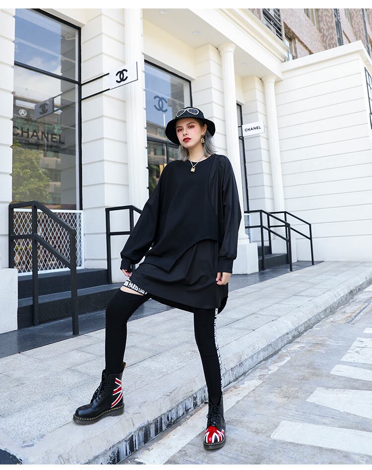 長袖Tシャツ女性インスーパーファイヤールーズミドル丈ラージサイズトレンディな黒の陰謀初秋のシャツデザインセンス女性ニッチ ラブタオタオダレンハウス61172813639