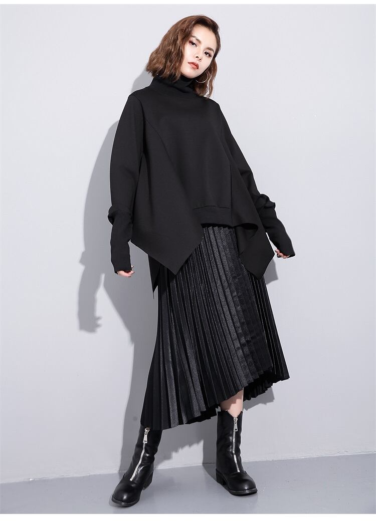 フレンチニッチトップス、薄手、初秋、薄風、大サイズ不規則ハイカラーボトミングシャツ、長袖Tシャツ、レディースセーター ラブタオタオダレンハウス61322321399