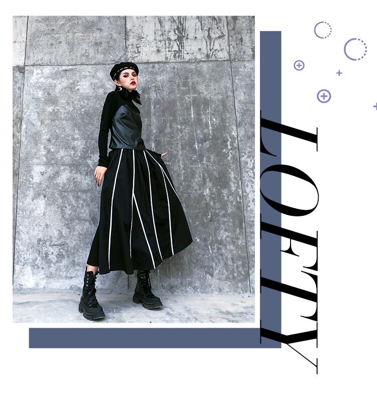 スタイルスカート オータムウィンタースタンダードAラインハイウェストウェスト薄手ストライプ レトロ 大きめサイズ 秋物 冬物 ラブタオタオダレンハウス30012205102