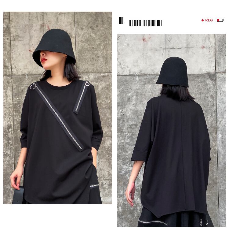 Xイレギュラースリーブトップウィメンズルーズ七分袖オールマッチスケミングベースシャツウィメンズセンスインナーラージサイズTシャツ ラブタオタオダレンハウス46973799054