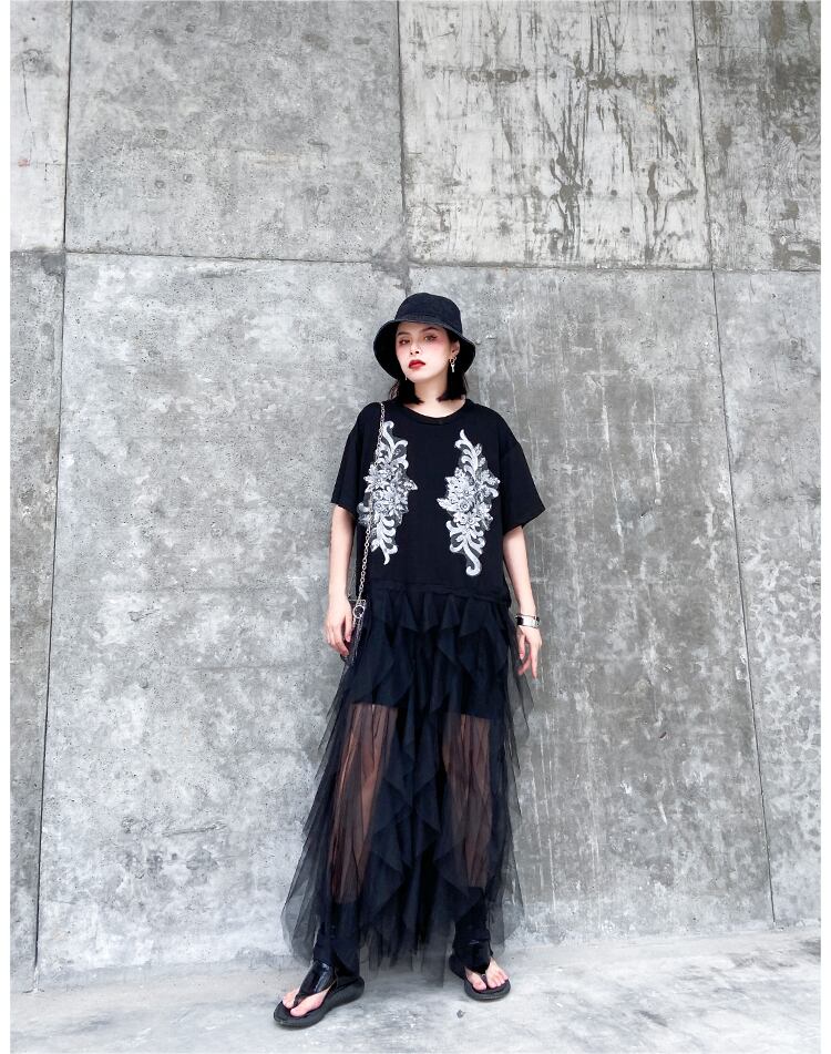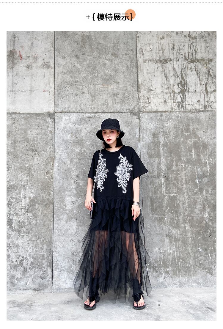 Xplatycodonフレンチヘップバーンドレス2020新夏プラスサイズスリムフェアリースーパーフェアリー半袖ステッチメッシュスカート ラブタオタオダレンハウス4198832300
