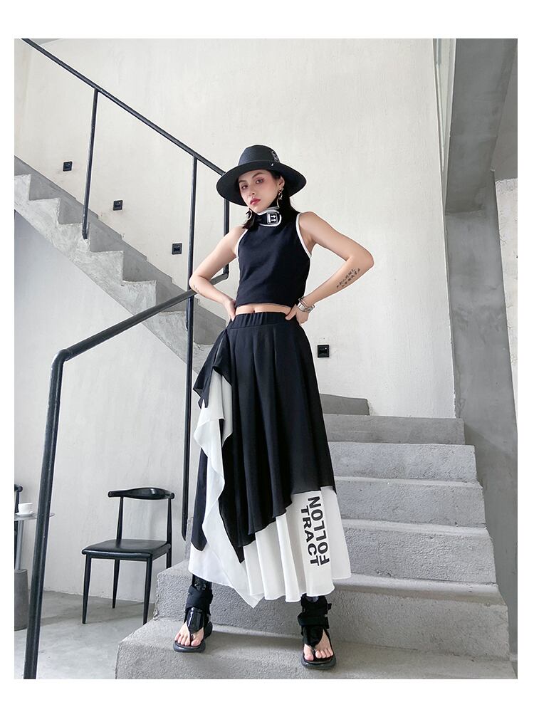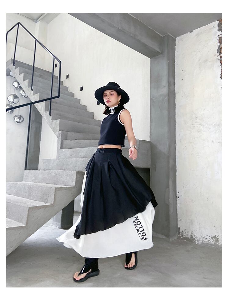 Xイレギュラースカート春夏ミドル丈Aラインルーズラージサイズファットmmコントラストカラースカートウエスト付き ラブタオタオダレンハウス3844635046