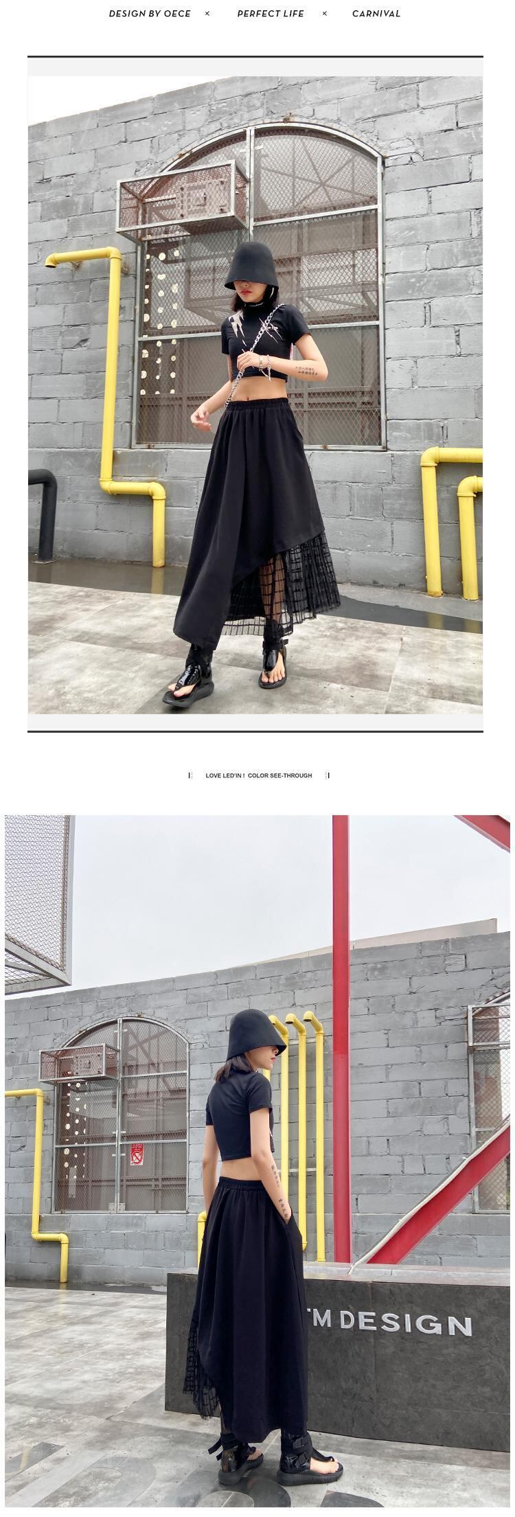 不規則なスカートa-lineスカート夏ミドル丈ラージサイズハイウエストファットmmステッチメッシュロングスカート女性春秋 ラブタオタオダレンハウス23582425816