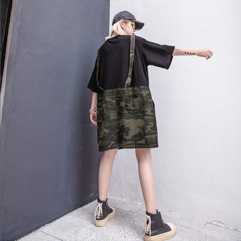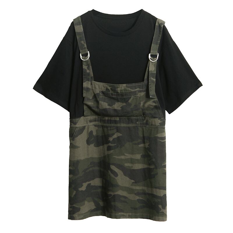 迷彩柄ストラップ ドレス サマー薄手ロングTシャツ スカート 大きめサイズ 夏物 ラブタオタオダレンハウス29069345015