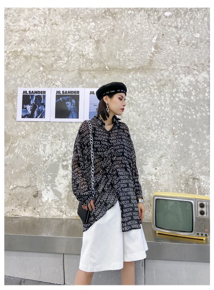 シフォンシャツ レディーススタンダードプリントサマー薄手トップス ロング レトロ 大きめサイズ 夏物 ラブタオタオダレンハウス77669754773