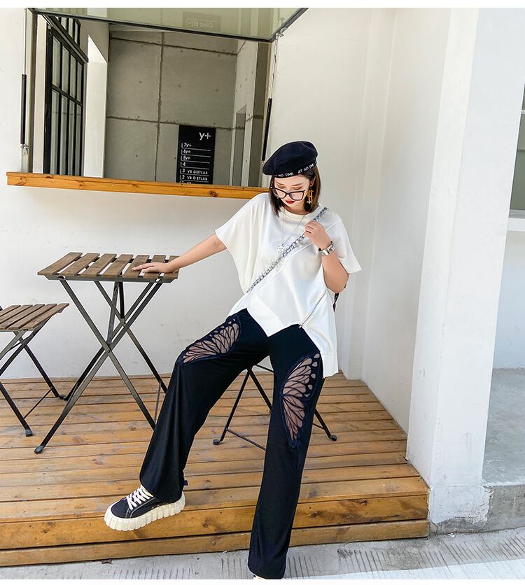 レディースサマーハイウェストウェスト薄手ルーズパンツ Butterflyデザイン パターンカジュアル 大きめサイズ 夏物 ショーツ ブルマー ラブタオタオダレンハウス6732721824
