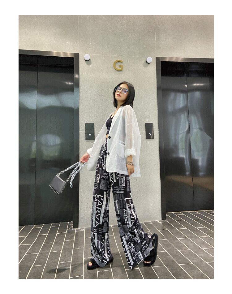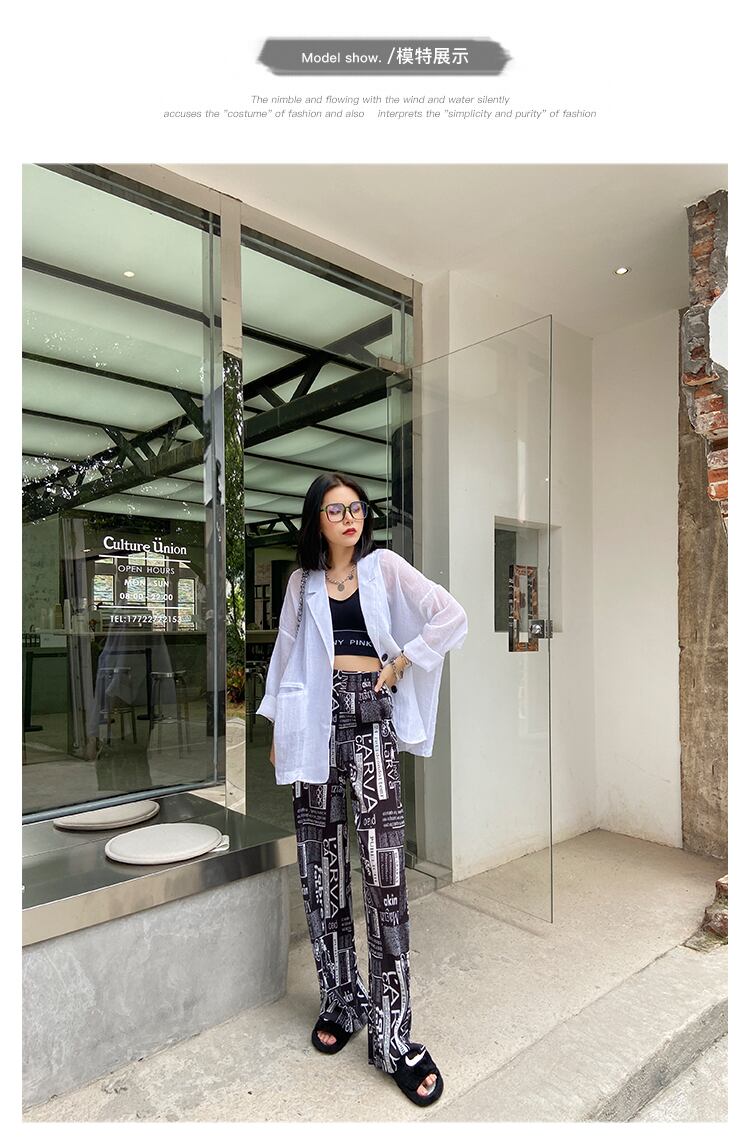ワイドレッグパンツ ハイウェストウェストサマー薄手プリーツプリント柄カジュアル 大きめサイズ 夏物 ワイドパンツ ラブタオタオダレンハウス84171850616