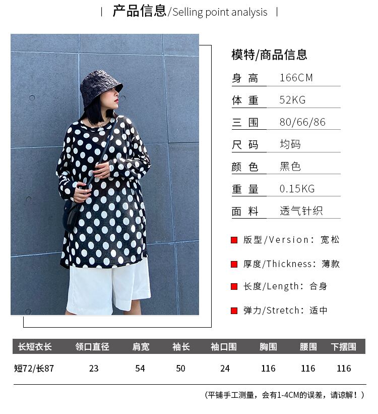 Tシャツ レディースルーズ薄手水玉トップス サマープルオーバー ブラウス ロング 大きめサイズ 夏物 ラブタオタオダレンハウス13858987467