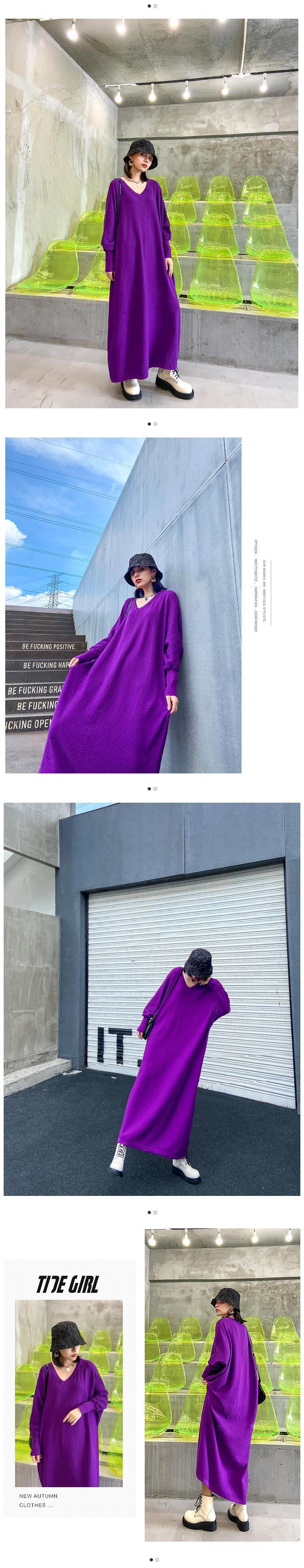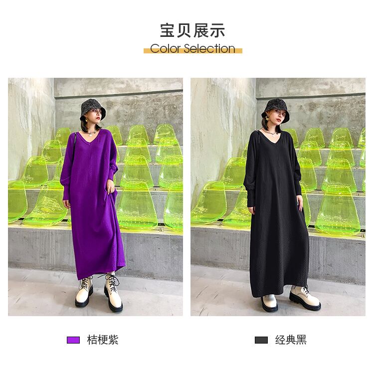 レディースニットドレス オータムロング 大きめサイズ 秋物 ウィンター 冬物 スカート Vネック ラブタオタオダレンハウス9193488995
