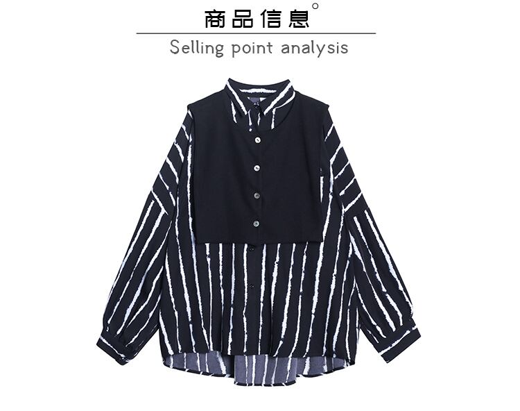 ストライプシャツ ルーズスタイルスタンダードブラウス ニット ロング レトロ ラブタオタオダレンハウス13646197623