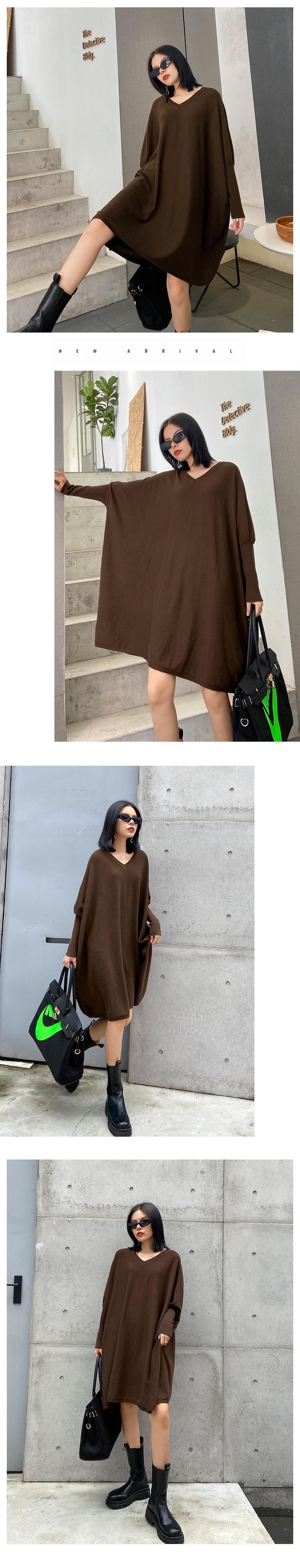 ニットドレス オータムルーズ薄手Vネックセーター スカート レディース 秋物 ラブタオタオダレンハウス52168637320