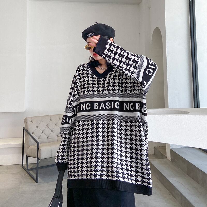 Vネックセーター レディースルーズプルオーバー スタンダードスタイルシャツ レトロ ウィンター 冬物 ラブタオタオダレンハウス11924250239