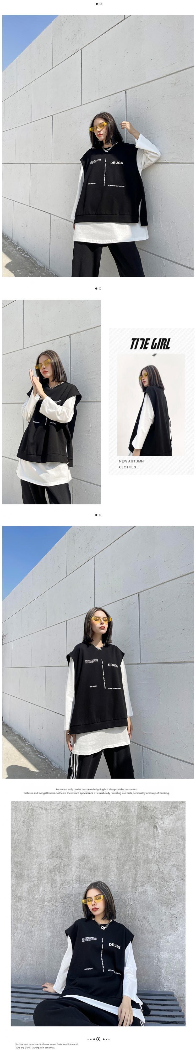 Tシャツ シャツ ルーズスタイルノースリーブトップス ロング ラブタオタオダレンハウス34453829335