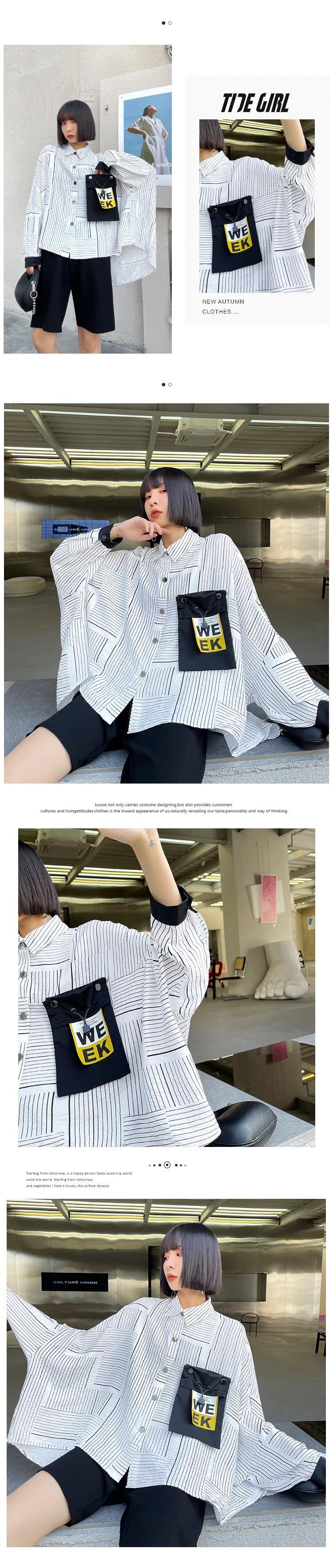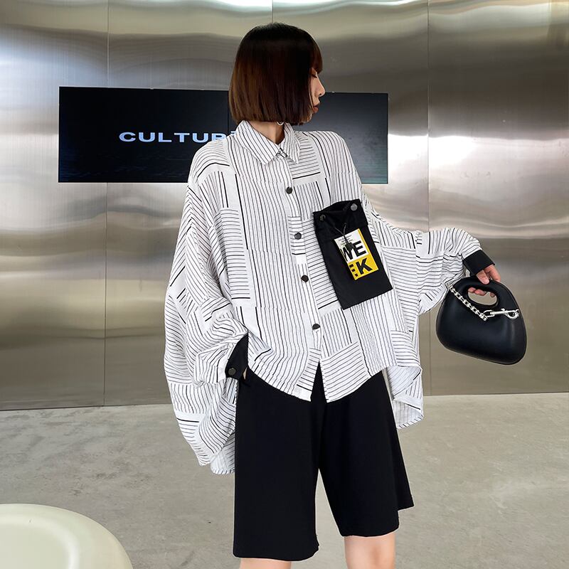 ストライプホワイトシャツ スタイルスプリングスリーブトップス 春物 ラブタオタオダレンハウス28241716549