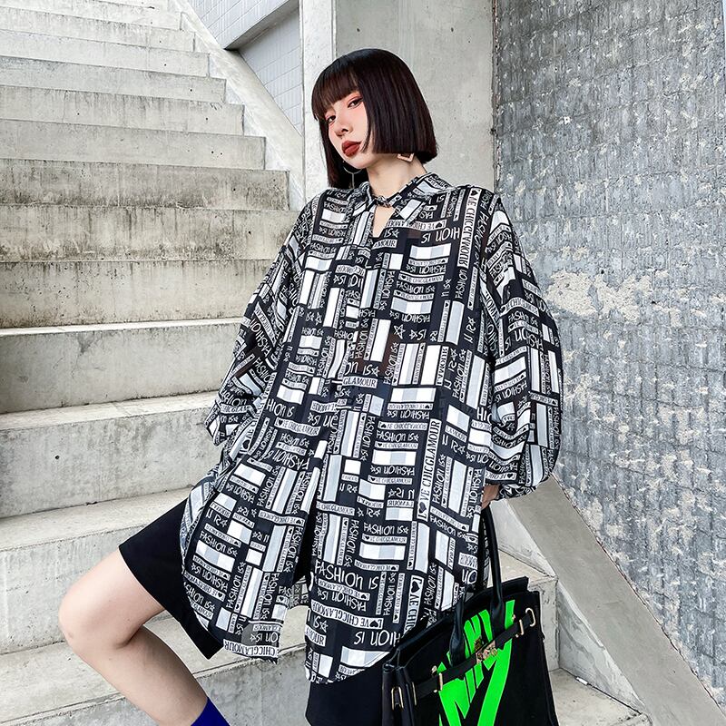 シャツ プリントスプリングトップス シフォン ロング 春物 ラブタオタオダレンハウス3976912594