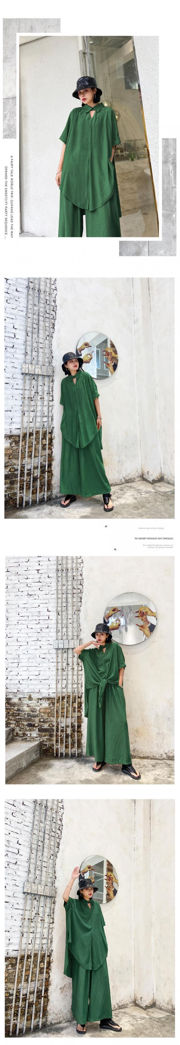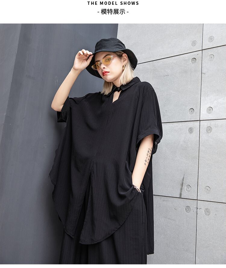スタイルサマースタンダードシャツ ブラックワイドレッグパンツ レトロ ストリート 夏物 ワイドパンツ ラブタオタオダレンハウス72249309624