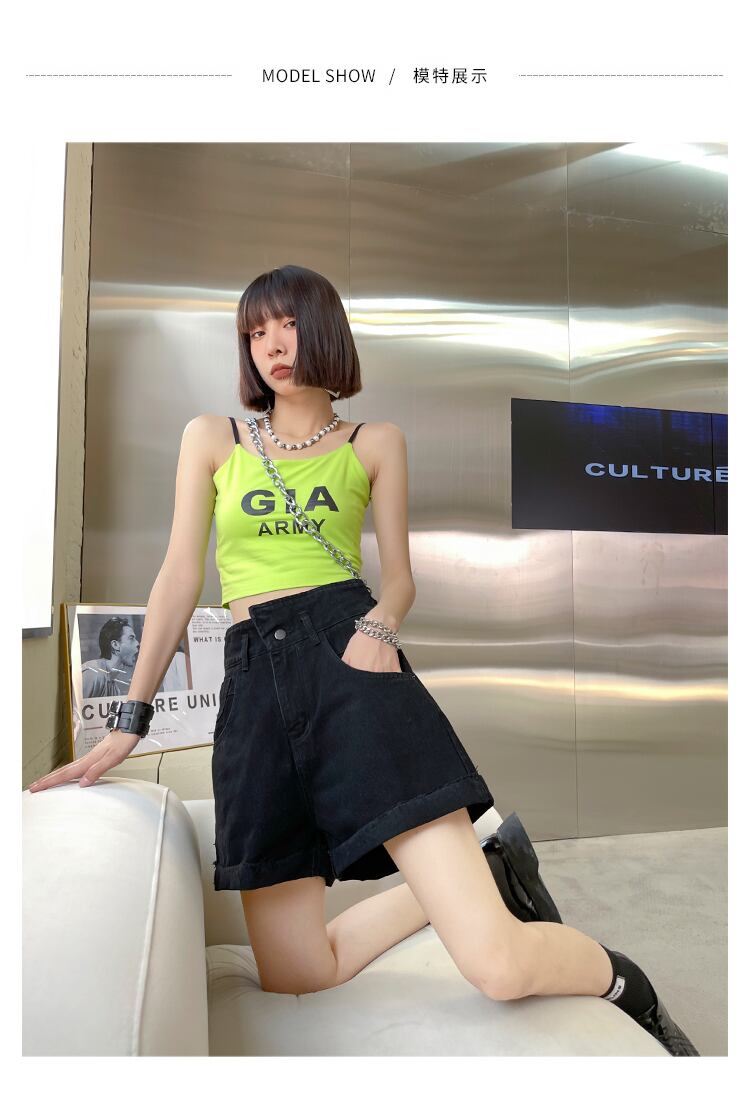 ブラックパンツ ルーズショーツ サマーハイウェストウェストスリム 夏物 ブルマー ラブタオタオダレンハウス60673978280