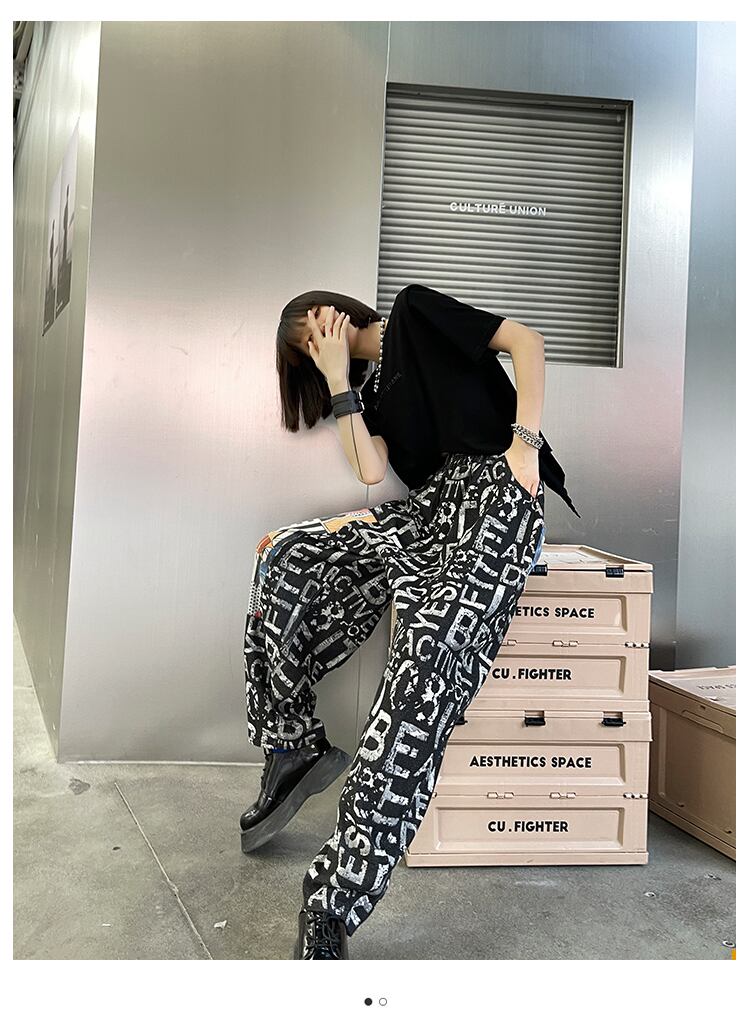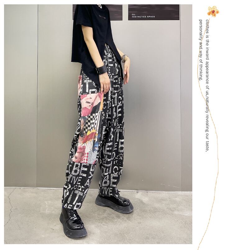 ジーンズ レディースサマー薄手ハイウェストウェストプリント柄ルーズカジュアルパンツ 夏物 ラブタオタオダレンハウス90777310767