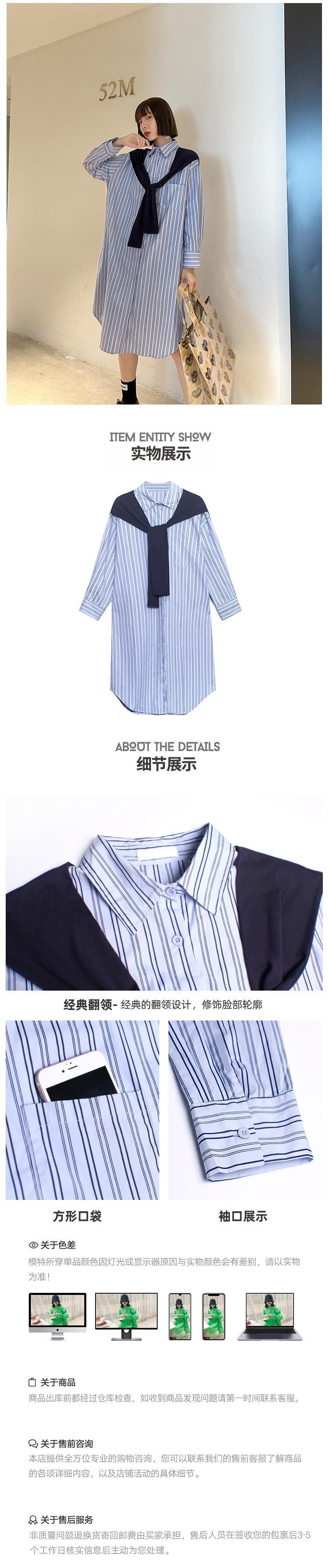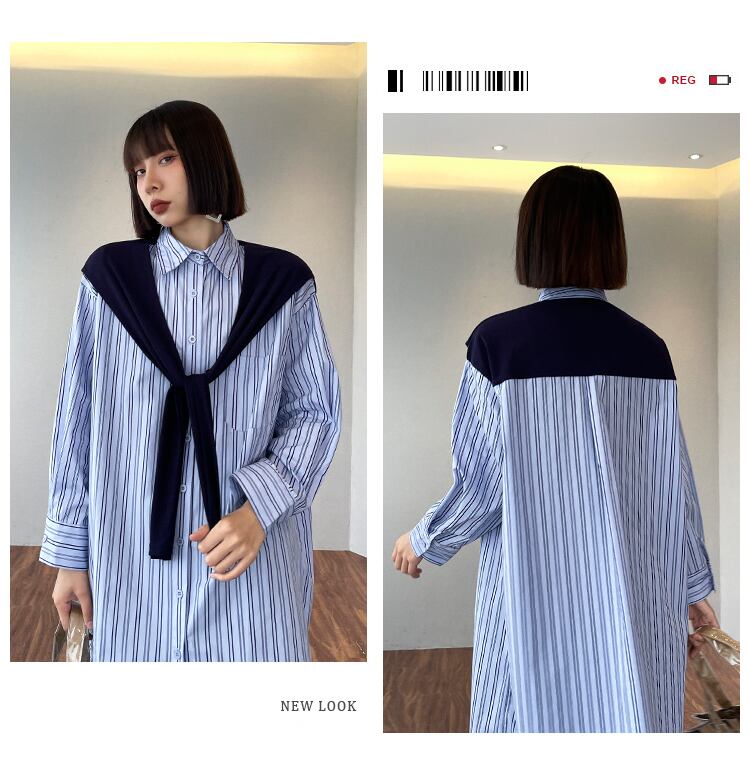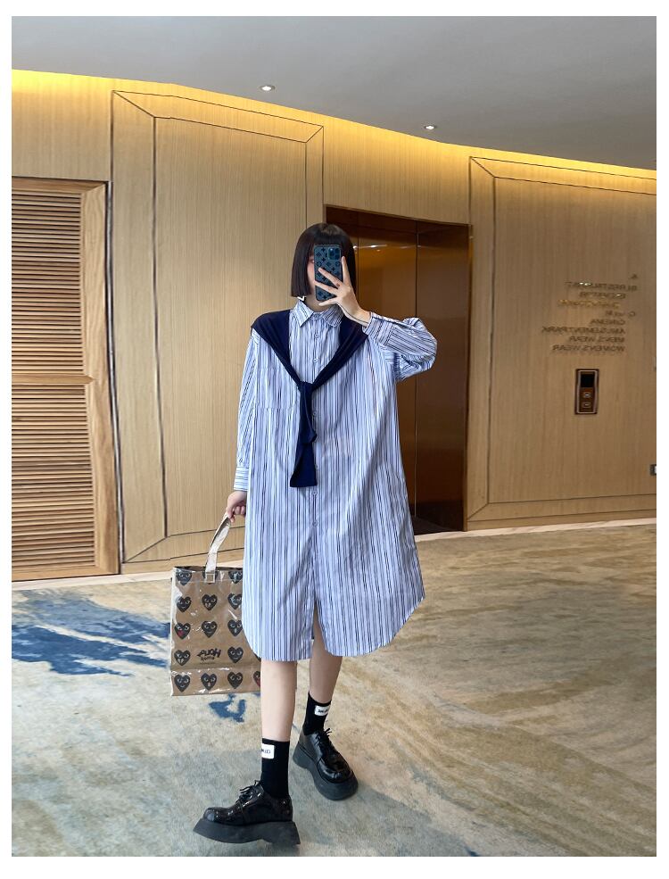 ブルーストライプドレス ルーズシャツ スカート ステッチ ラブタオタオダレンハウス24222721958
