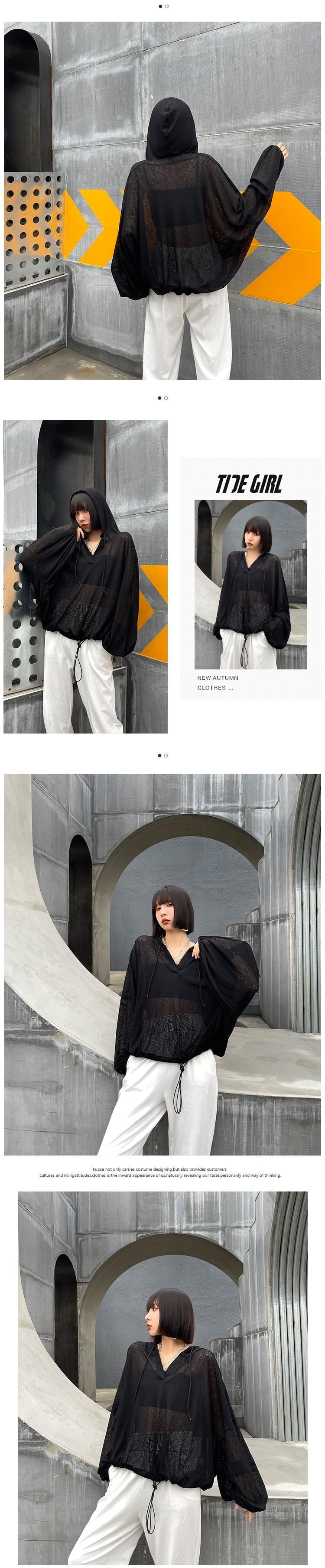 Tシャツ ルーズ薄手フードブラウス サマートップス ロング 夏物 ラブタオタオダレンハウス20616025738
