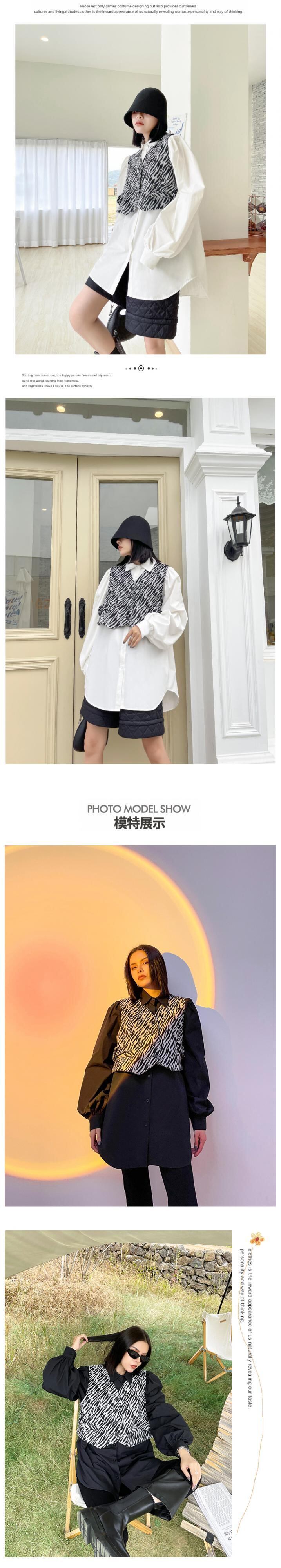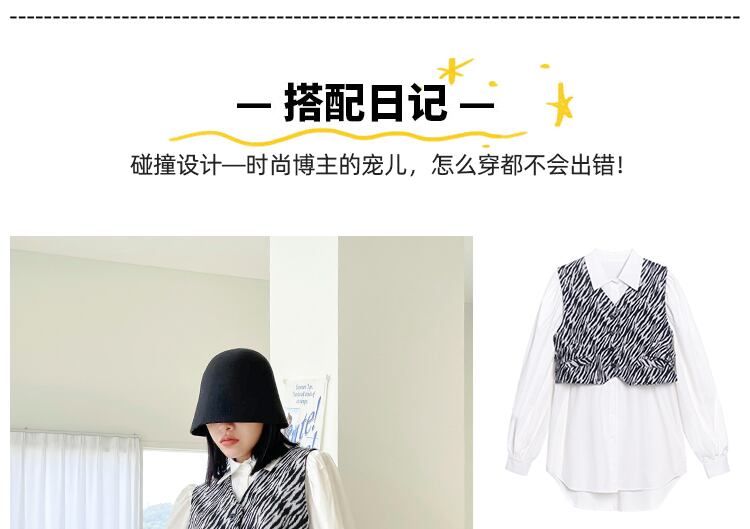 色:白のシャツ,黒いシャツ,ゼブラ柄ベスト