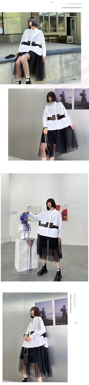 シャツスプリングメッシュ ロング 春物 ラブタオタオダレンハウス77163775007