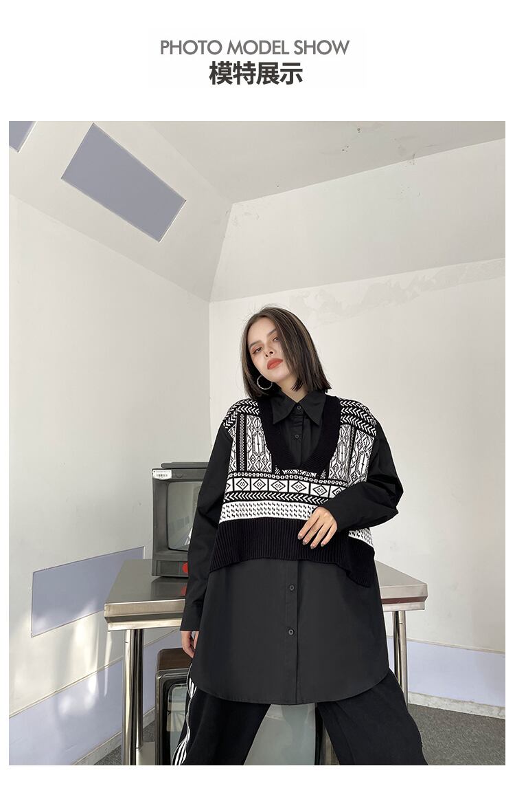 シャツ スタンダードスタイルニットブラウス レディーススプリング ロング レトロ 春物 ステッチ ラブタオタオダレンハウス19815024003