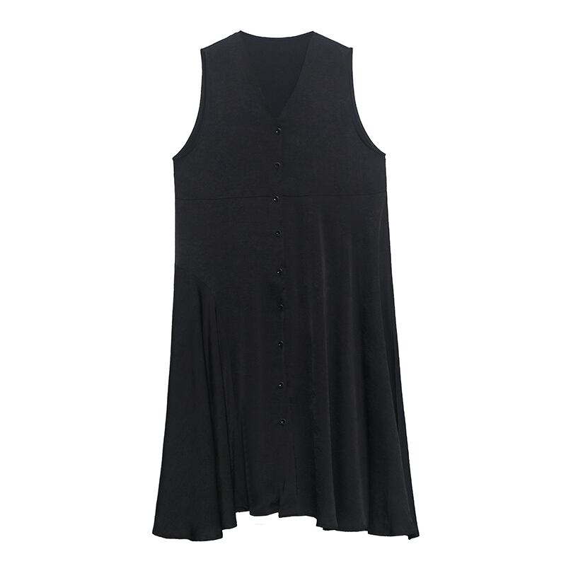 ブラックドレス サマーノースリーブロングスカート ルーズ薄手シャツ 夏物 ラブタオタオダレンハウス94623468199