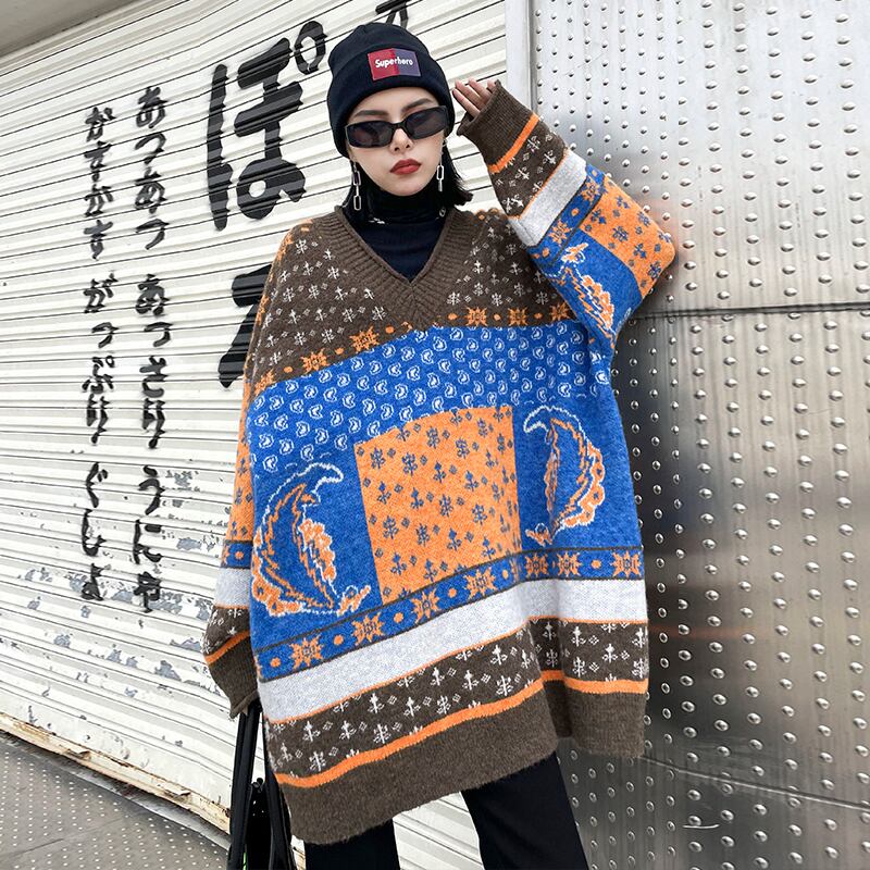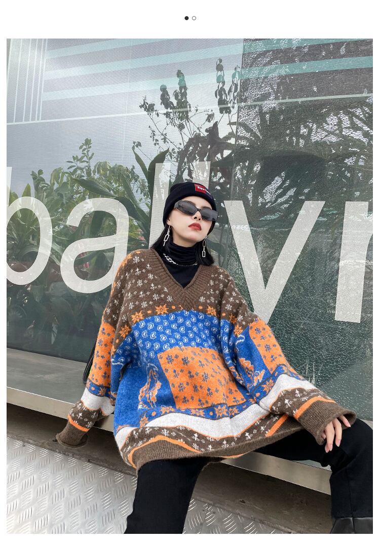 Vネックセーター ルーズウィンタースタンダード レトロ 冬物 ラブタオタオダレンハウス13125448164