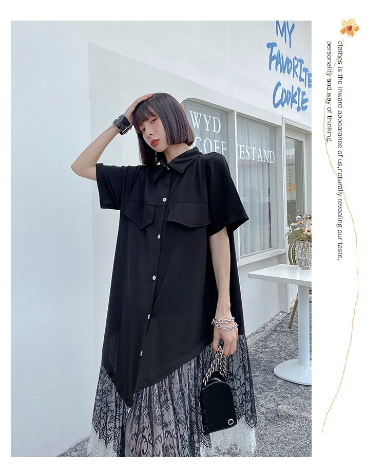 ブラックドレス サマーレースシャツ スカート ロングレディース 夏物 ステッチ ラブタオタオダレンハウス95162642337