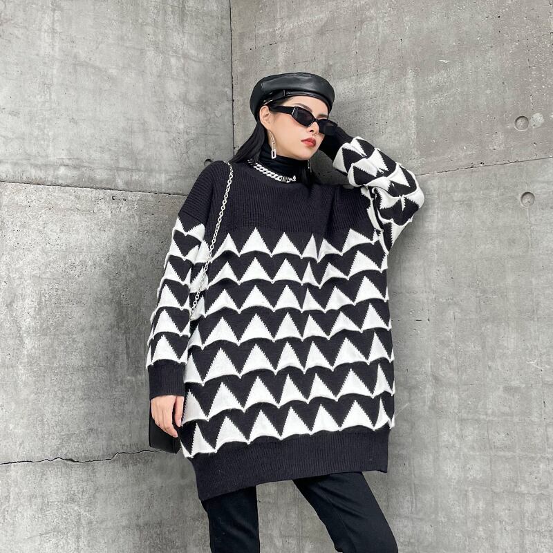 ブラックホワイトセーター ルーズオータムウィンタースタイル 秋物 冬物 ラブタオタオダレンハウス93419528632