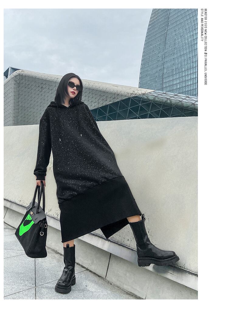 セーター レディースオータムウィンターロングルーズフードベルベットジャケット ドレス 秋物 冬物 ラブタオタオダレンハウス877295978