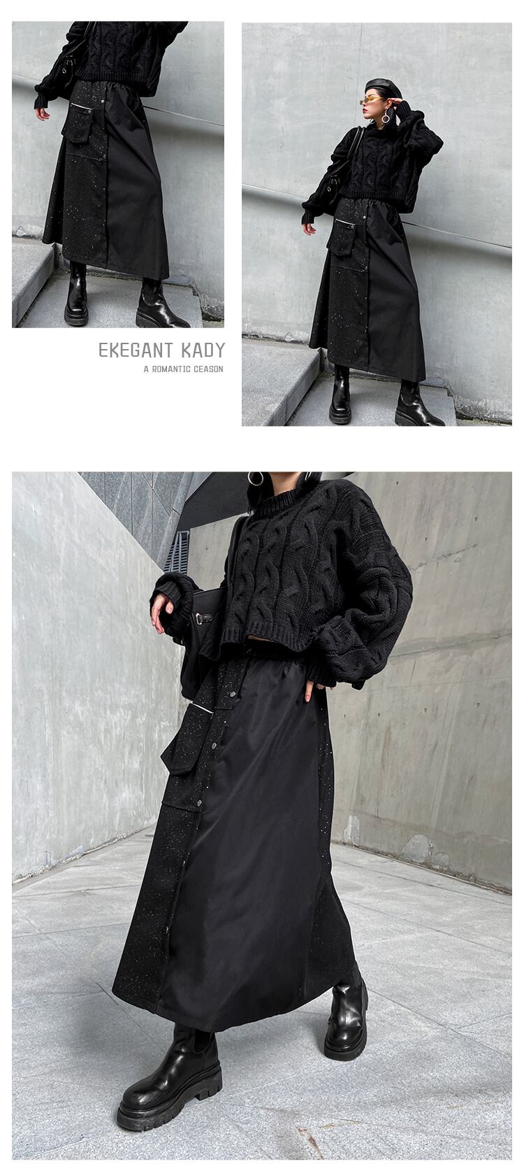 スカート ウィンターセーター Aラインハイウェスト薄手ブラック 冬物 ステッチ ラブタオタオダレンハウス88412912782
