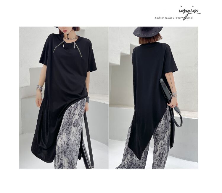 ブラックTシャツ レディースサマールーズスリムトップス コットン 夏物 ピュア ラブタオタオダレンハウス74874352095