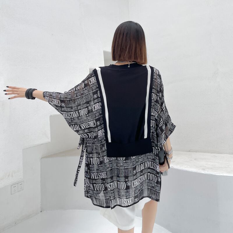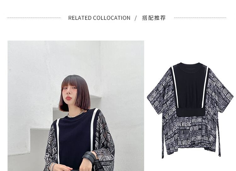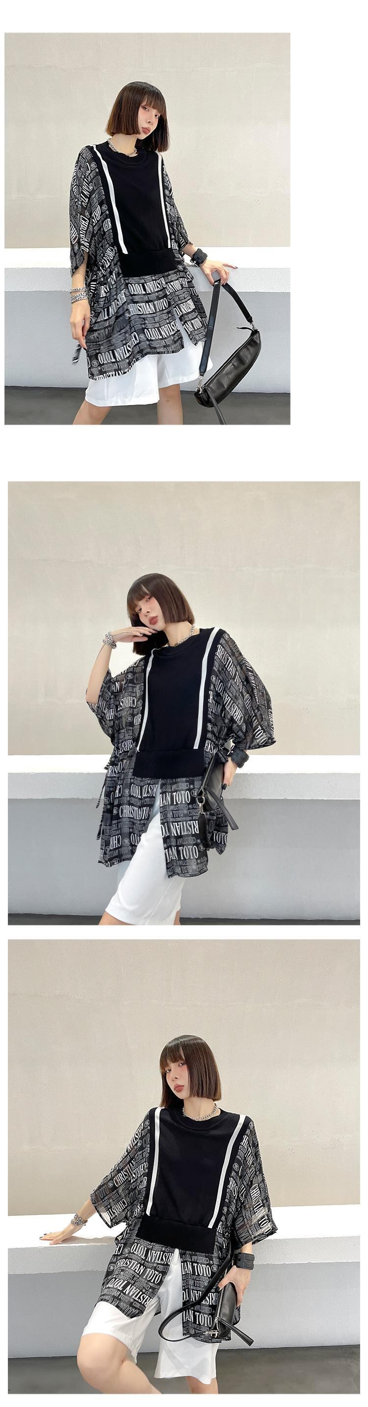 ルーズTシャツ レディースサマーブラックスタイル薄手トップス かわいい 夏物 ステッチ ラブタオタオダレンハウス95277614196