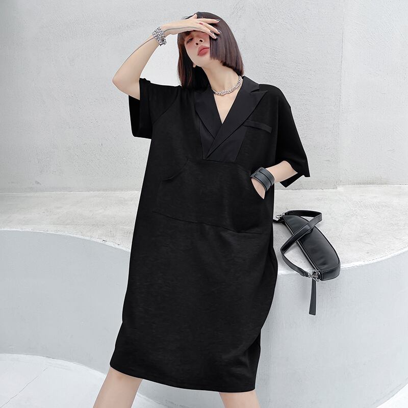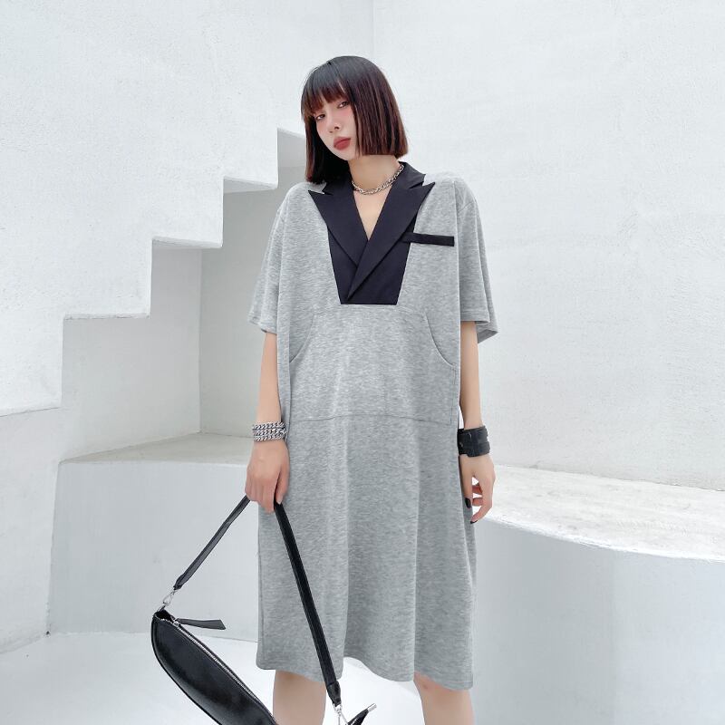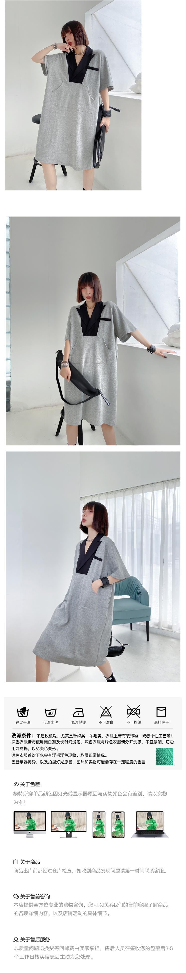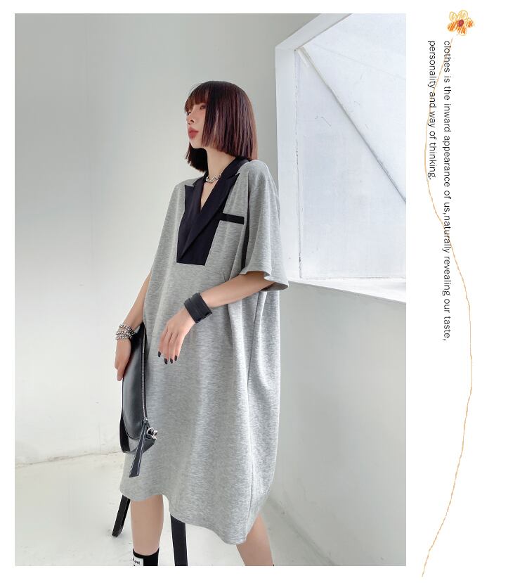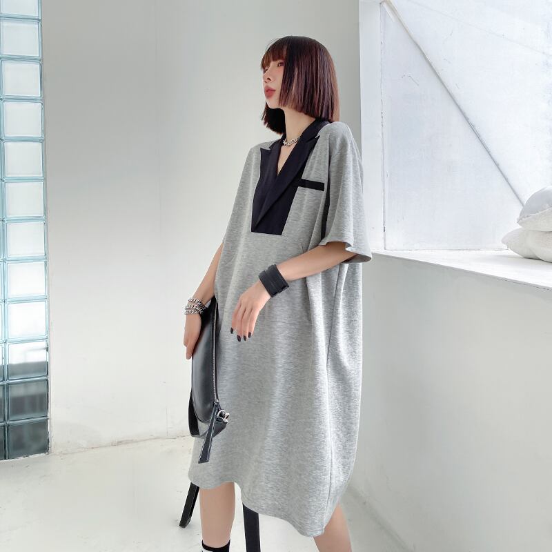 グレーカジュアルドレス サマーカラールーズ薄手ロングTシャツ スカート 夏物 ラブタオタオダレンハウス87912437703