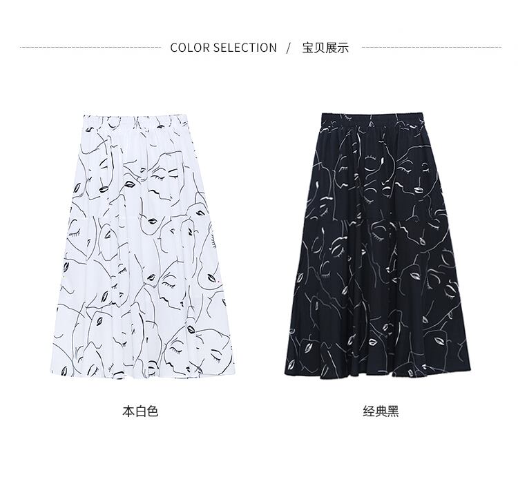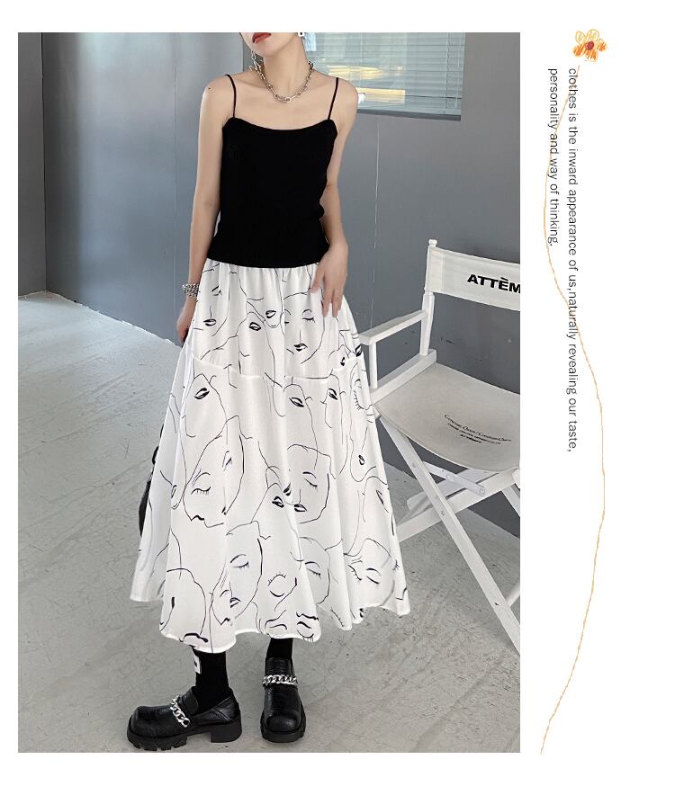 ホワイトスカート サマーハイウェストスリムプリントAラインロング 夏物 ラブタオタオダレンハウス54414300376