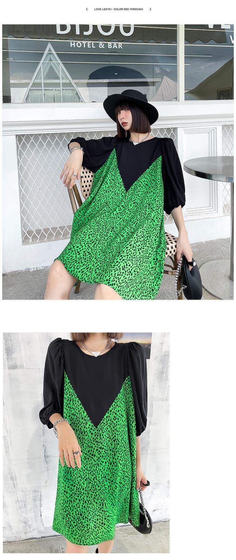 色:黒と緑のヒョウ柄