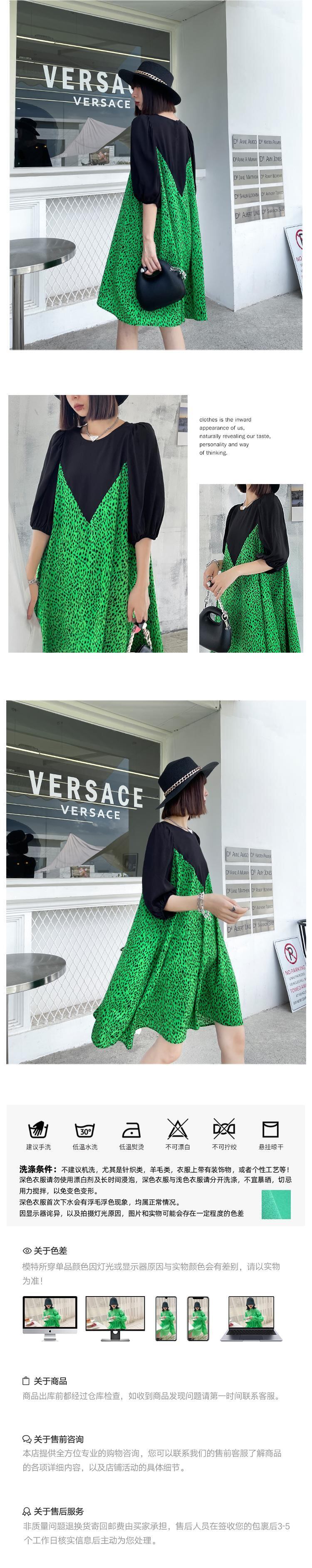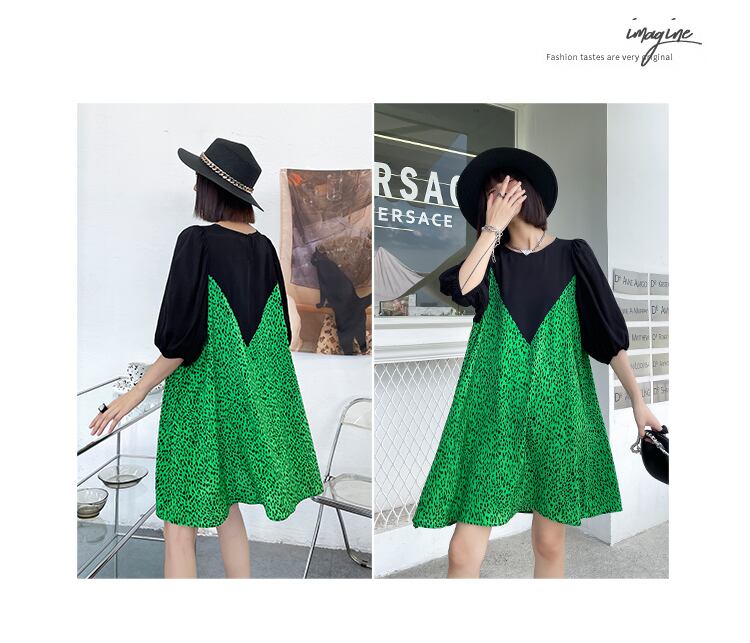スリーブドレス サマールーズ薄手スカート ラウンドネックカジュアル 夏物 Oネック ステッチ ラブタオタオダレンハウス81465229969