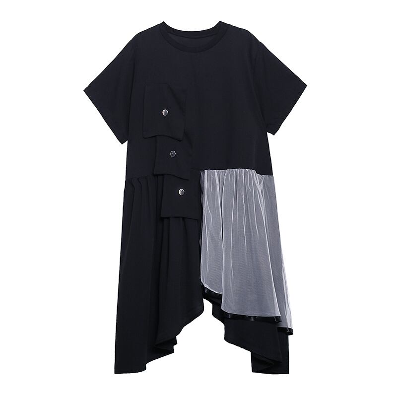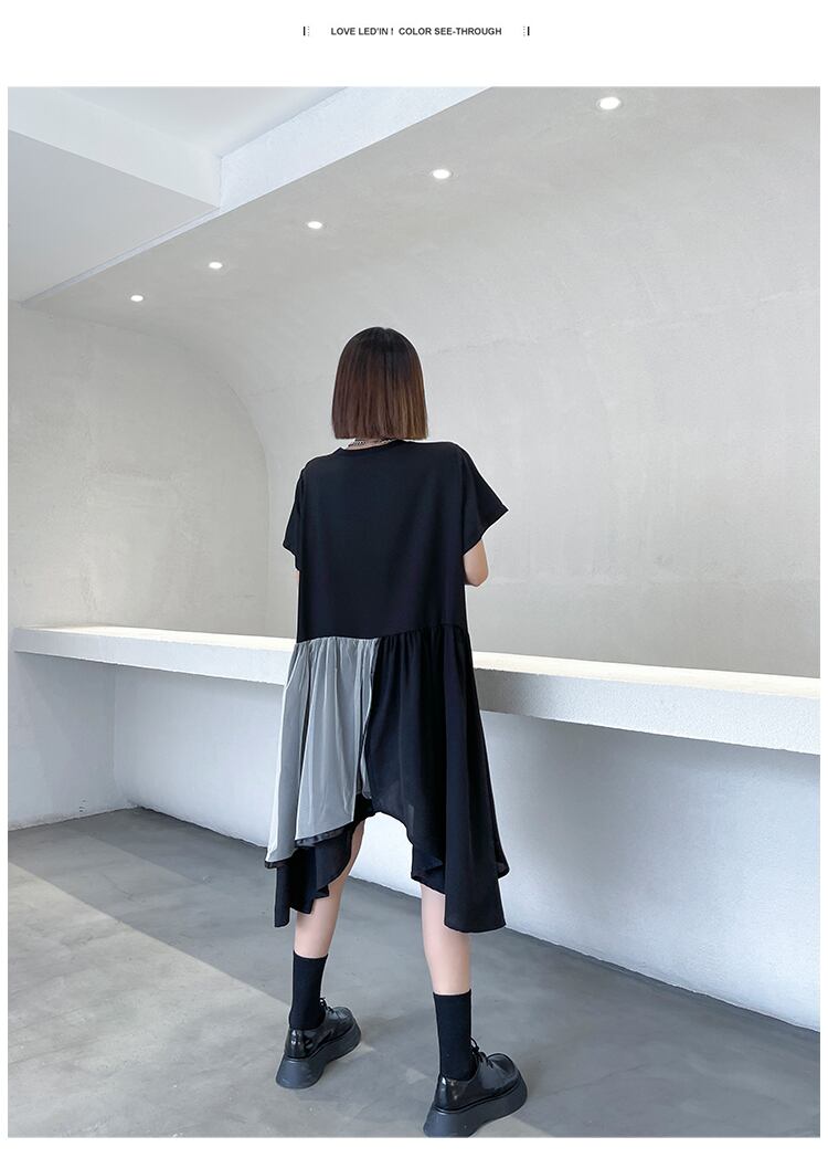 ドレス ラウンドネック半袖スリーブルーズ薄手サマーブラックスカート ショート ハーフスリーブ 夏物 Oネック ラブタオタオダレンハウス6475053253