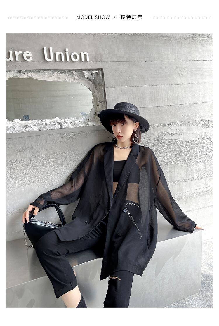 ブラックレディースサマー薄手ルーズジャケット 夏物 ラブタオタオダレンハウス6561829641