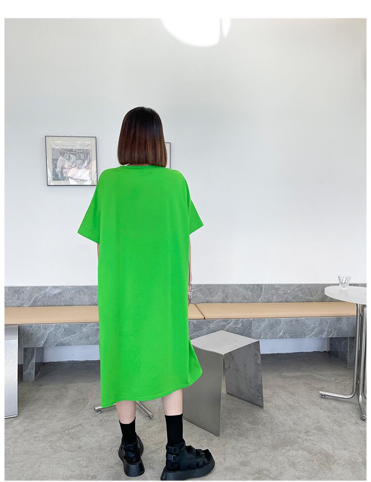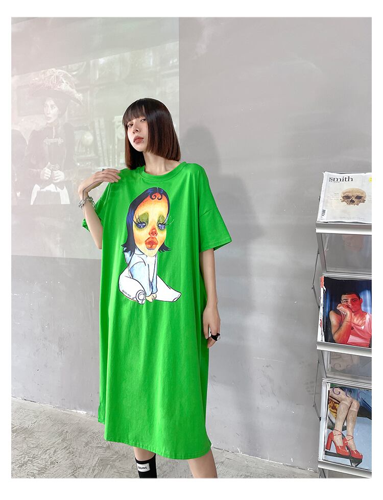 グリーンTシャツ ドレス サマープリントルーズ薄手ロングスカート 夏物 ラブタオタオダレンハウス83887404933