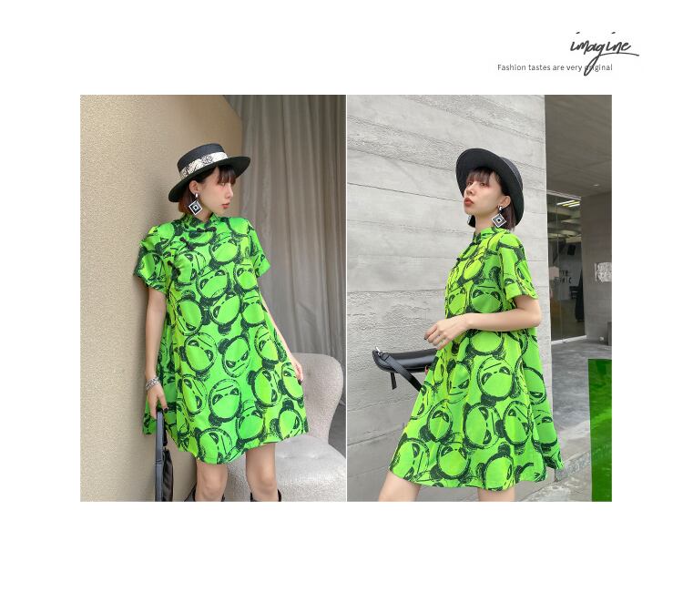 ドレス サマーグリーンプリント柄ルーズ薄手ロングスカート 夏物 ラブタオタオダレンハウス87976650134
