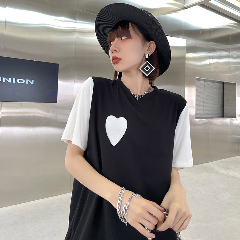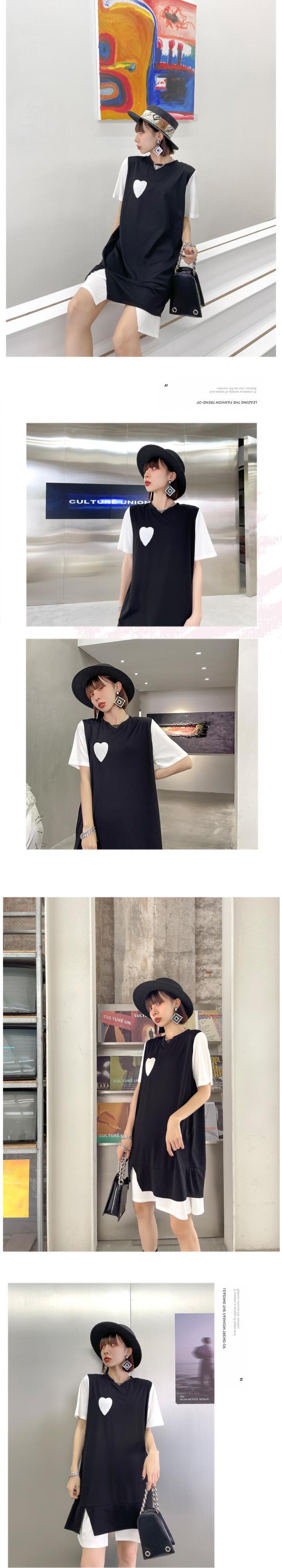 ブラックTシャツ ドレス サマーカラールーズ薄手スカート 夏物 ステッチ ラブタオタオダレンハウス92987707893