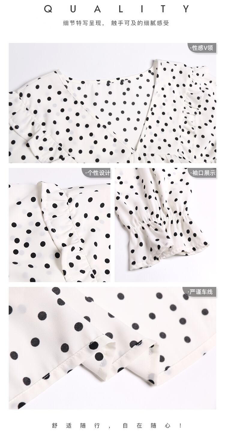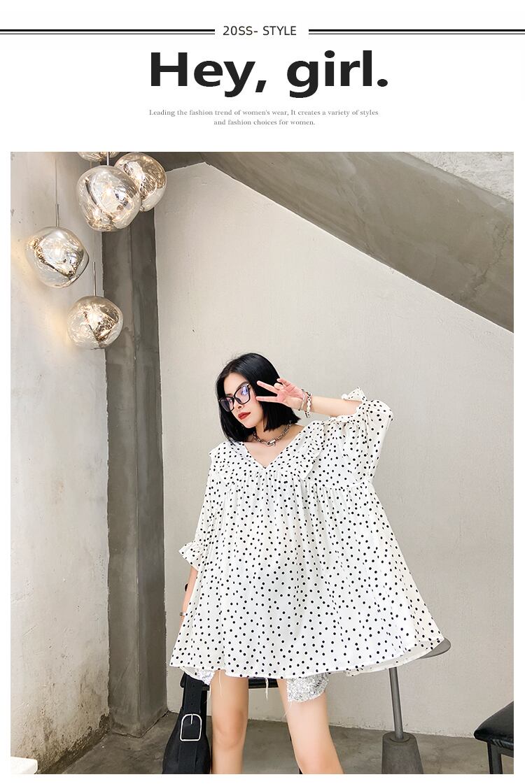 ホワイト水玉シフォンシャツ レディースサマー薄手スタイルルーズトップス 夏物 ラブタオタオダレンハウス41470816180