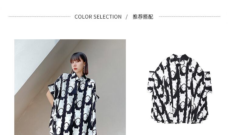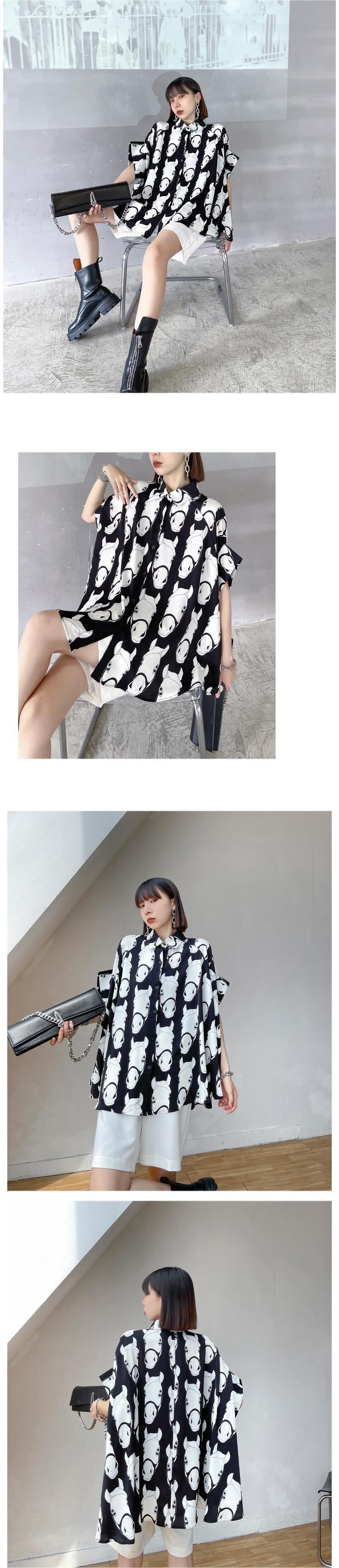 ブラックスタイルシャツ レディースサマー薄手スタンダードプリントルーズ レトロ 夏物 ラブタオタオダレンハウス44438557002